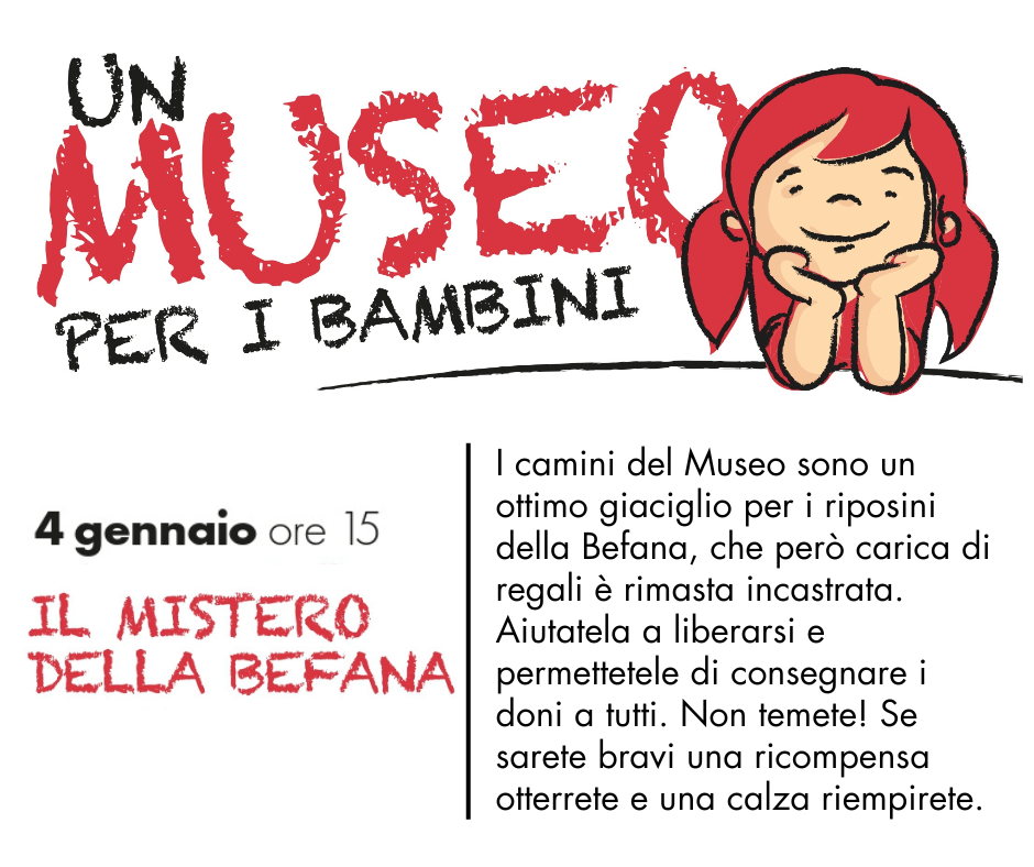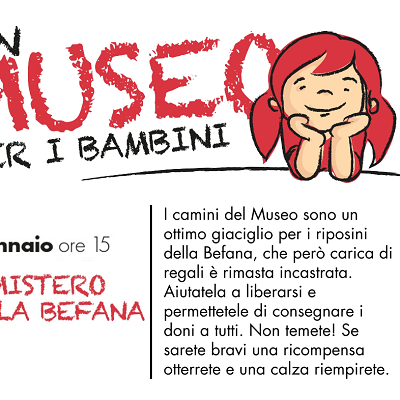 I camini del Museo sono un ottimo giaciglio per i riposini della Befana, che però carica di regali è rimasta incastrata. Aiutatela a liberarsi e permettetele di consegnare i doni a tutti. Non temete! Se sarete bravi una ricompensa otterrete e una calza riempirete