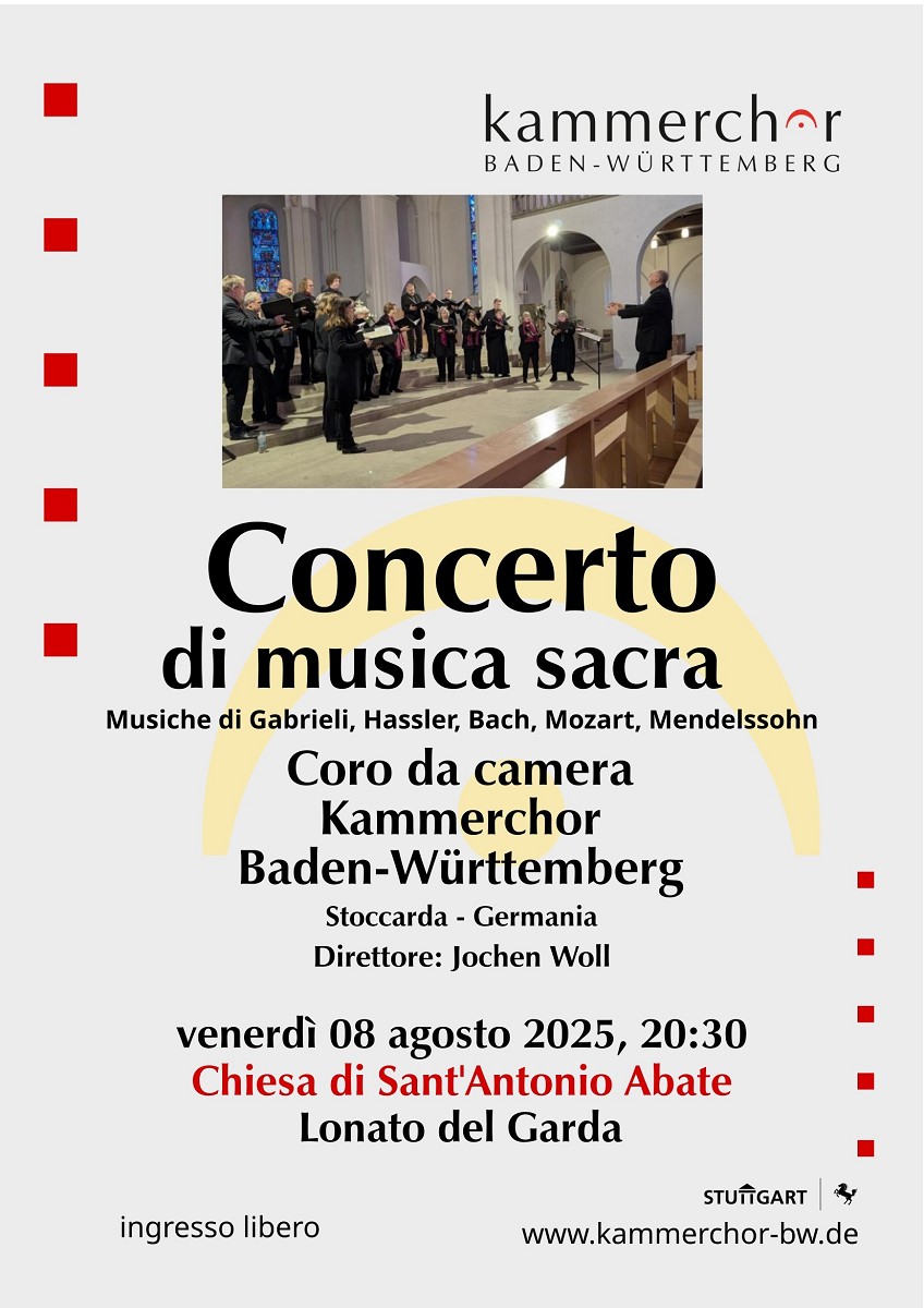 Un’occasione unica per ascoltare dal vivo uno dei cori da camera più rinomati della Germania: il Kammerchor Baden-Württemberg, diretto da Jochen Woll, arriva da Stoccarda per un concerto dedicato ai capolavori della musica sacra.