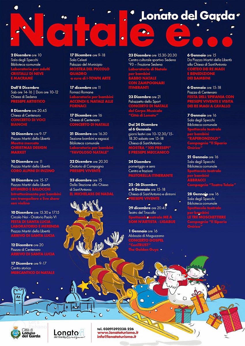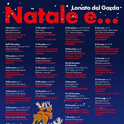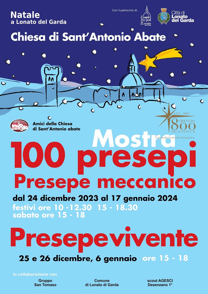 Lonato del Garda si animerà nelle giornate più magiche dell’anno con un suggestivo presepe vivente ambientato nei luoghi unici tra la Chiesa di Sant’Antonio, le mura civiche e la Casa del Podestà. I figuranti ripropongono le scene della nascita di Gesù ricostruendo un percorso scenografico che si conclude con la scena della Natività.