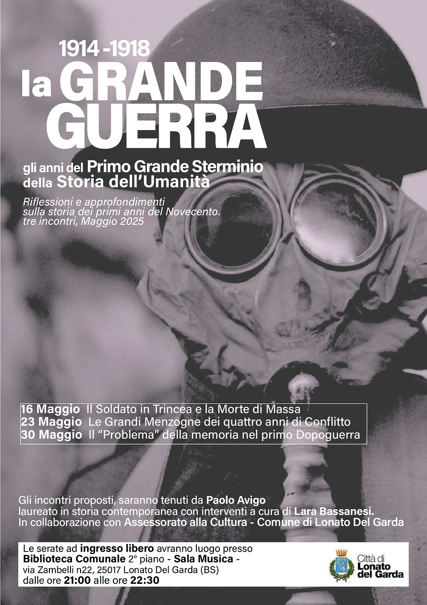 Nel mese di maggio 2025, la Biblioteca Comunale di Lonato del Garda ospita un ciclo di tre incontri dedicati alla Prima Guerra Mondiale.