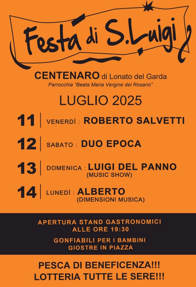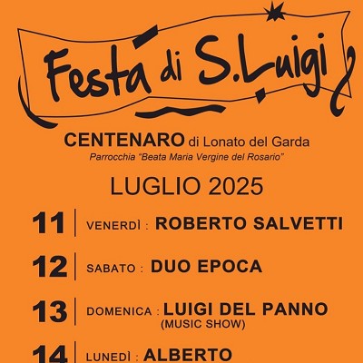 Dalle 19 alle 24: Tradizionale "Sagra di S. Luigi" Frazione di Centenaro