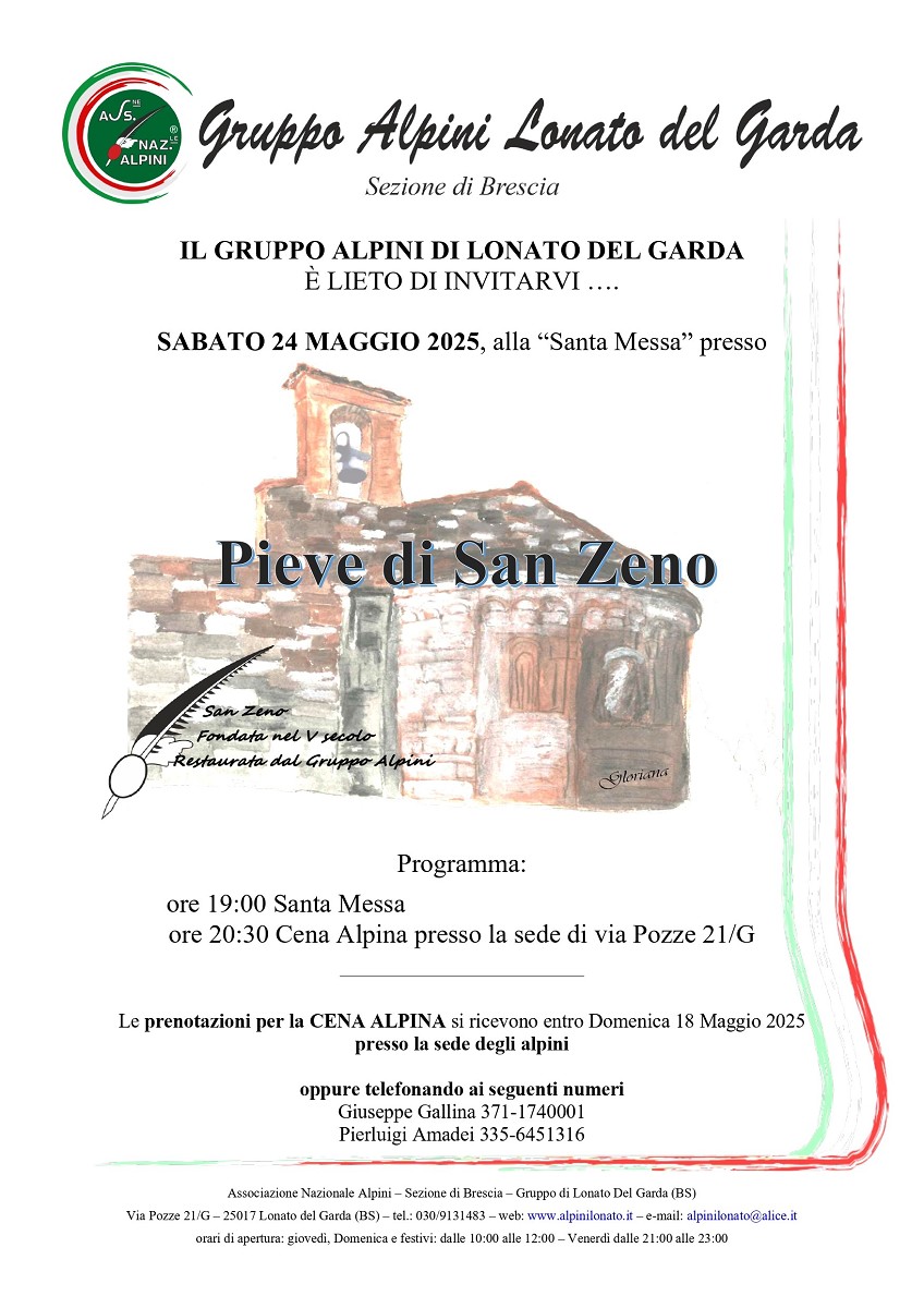 Le prenotazioni per la CENA ALPINA si ricevono entro Domenica 18 Maggio 2025